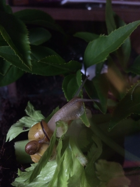 In der kleinen Box sind meine beiden Baby-Cornus wohl auf. Sie sind ja so hübsch - vor allem die ältere, Lissy. Ihr Gehäuse ist dunkel und genauso wie ich mir ihre drei Vorfahren gewünscht hätte ^^. Der kleine - inzwischen hat er einen Namen: Jim (von Jim Knopf) wächst auch prächtig wird aber wohl heller? nuja vllt dunkelt er noch nach aber so wie es jetzt aussieht habe ich zwei sehr verschiedene gesunde junge Schnecken da