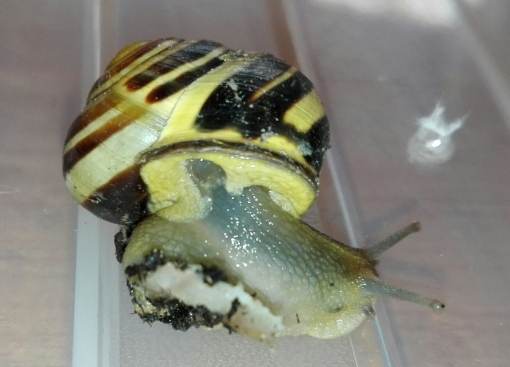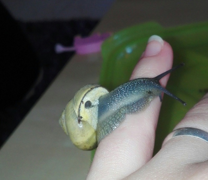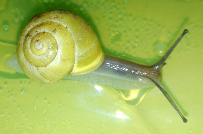 keine Sorge also. Die Tiere werden schön in Ruhe gelassen seit dem Foto oben. Der Kleine hat seinen “Bedarf“ wohl gestillt nach dem einmaligen halten der Hainbänderschnecke.