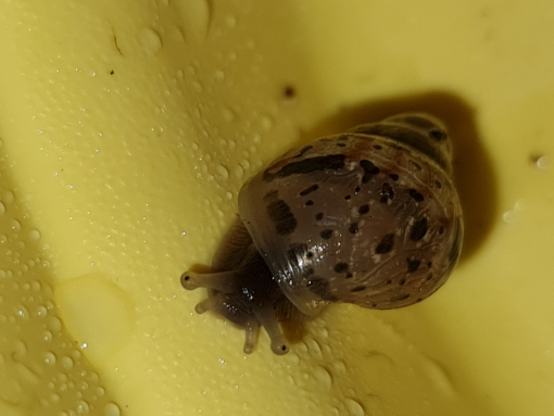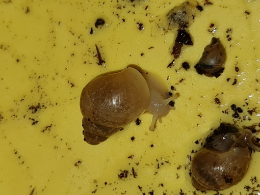 hat die Schnecke auf dem ersten Photo einen Riss im Häuschen? Schauen da Weichteile hervor?