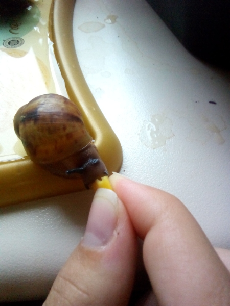 Als ich gerade in das Babybecken sah, habe ich dieses deprimierte Schneckchen entdeckt.