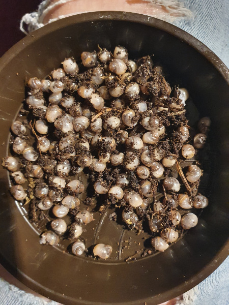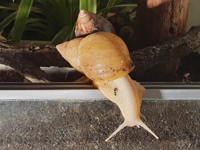Ich hab die Vermutung, dass zwei Limis den Umzug nicht überstanden haben. Ich seh immer nur sieben. Im Boden hab ich schon vorsichtig mit den Fingern rumgestochert, konnte aber kein Haus finden. Die sieben Stück haben jetzt einen kleinen silbernen Streifen auf ihrem Haus, damit ich sie nicht ausversehen doppelt zähle. Ich hab lange überlegt, ob ich sie markieren soll, aber ich hoffe mal, dass so eine kleine Stelle nicht schadet