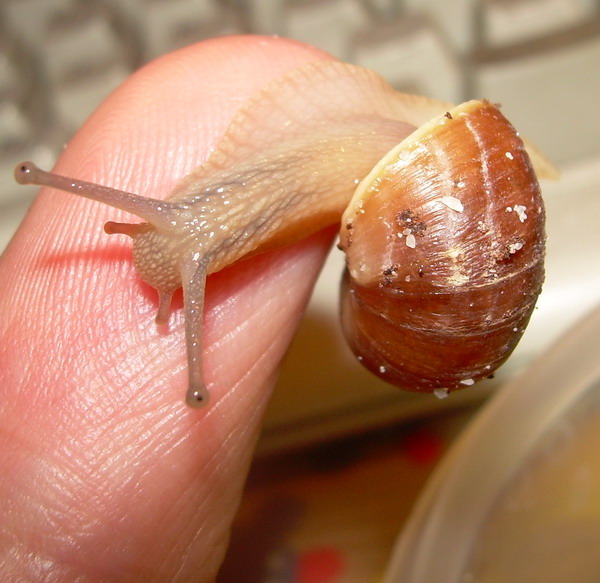 eine kleine Helix aus der Schule - also habe ich jetzt 5 Schnecken und ein Ei.