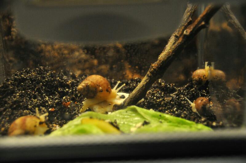 Auf dem Nachhauseweg gibt es neuerdings eine Stelle, wo mein Sohn die Häusschen von Bänderschnecken sammelt. Freitag war ein Häusschen aber nicht leer und der Kalkdeckel war schon weg. Spontan haben wir sie mitgenommen und sie ins Grunzterra gesetzt. Da Lili immer noch schläft, ist das sicher kein Problem. Wenn es keinen Frost mehr gibt, darf sie wieder gehen.