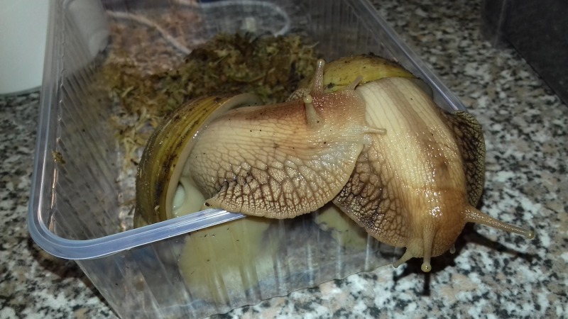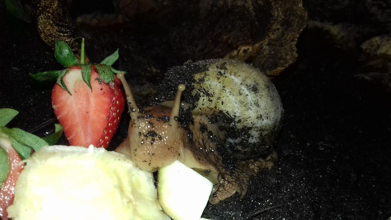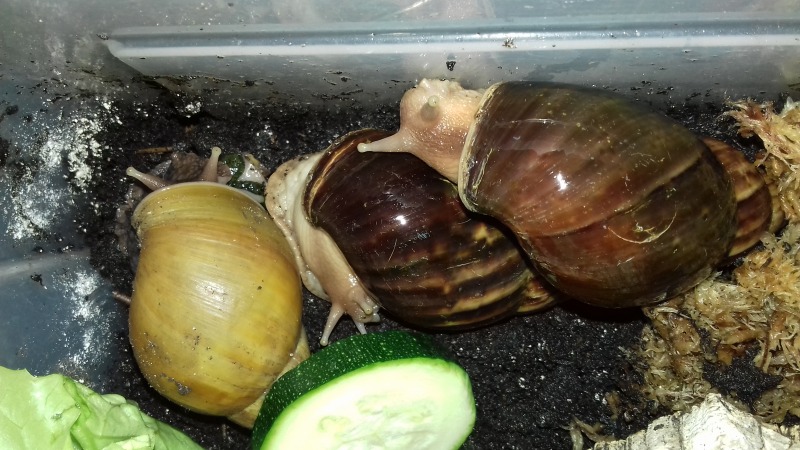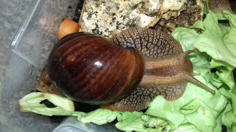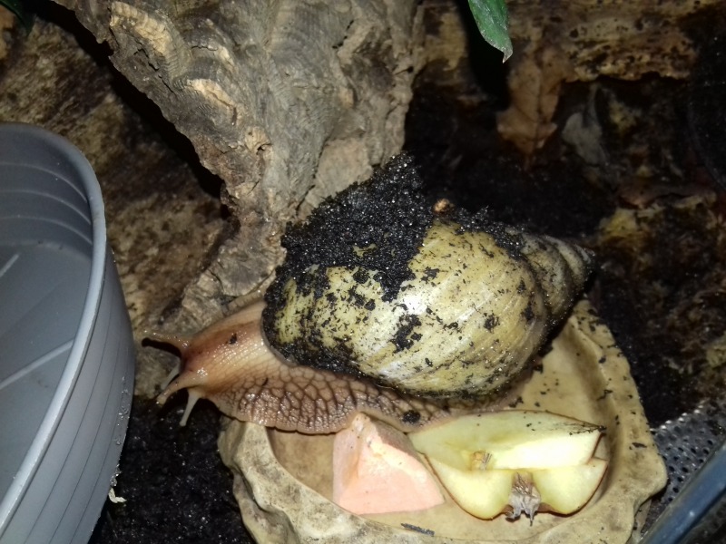 Dafür zogen einige neue Schnecken hier ein, da mit meiner Haltung nun endlich alles zu passen scheint. Das zeigten mir auch die drei neuen Lissachatina albopicta, die ich seit ein paar Monaten habe. Viel fitter und schöner gewachsen als Cora und Crazy früher.
