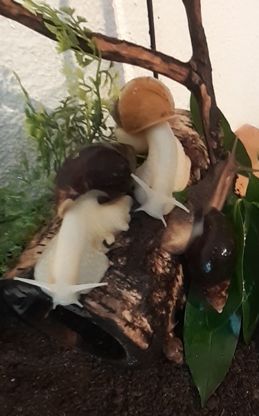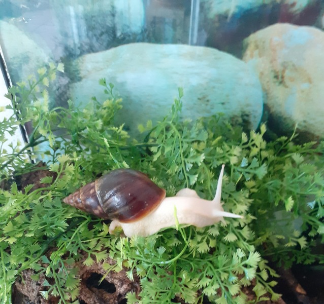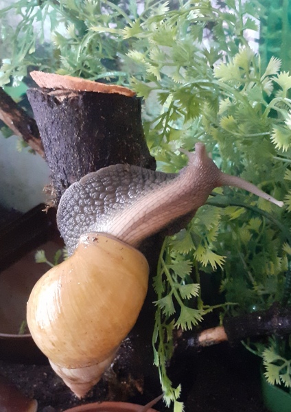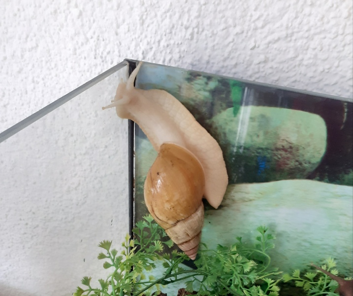 Arnold sitzt in der Wasserschale, das ist das Unterteil von einem Vogelbad, ich hab das mal so provisorisch reingetan, hat sich aber bewährt. Es ist aus Plastik, nicht zu tief und der Boden ist griffig. Arnold liebt das Ding.