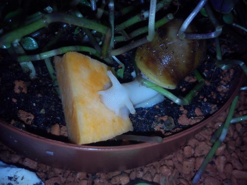 ich weiß nicht, ob ich das richtig geschrieben habe... Der lat. Name ist: Callisia repens.. und alle meine Schneckis futtern das total gern... und die "kleinen" schlafen gern im Topf unter den Blättern