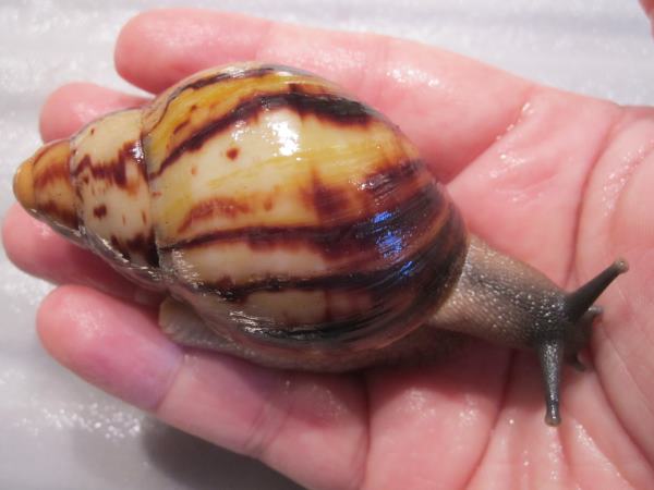 Er fragt jeden Samstag immer wieder "Und das macht Spaß? Stundenlang im Dreck wühlen und putzen?" Aber wenn er sieht, dass ich dann immer zufrieden quietschend mit meinen Schnecken rede und mich freue wie ein Kind an Weihnachten, wenn ich sie begutachte, ob alles OK ist, dann sagt er nur, dass er sich freut, dass ich mich so um sie kümmer und regelmäßig alles pflege. Er hatte Angst, dass die Terrarien immer gammelig aussehen würden.