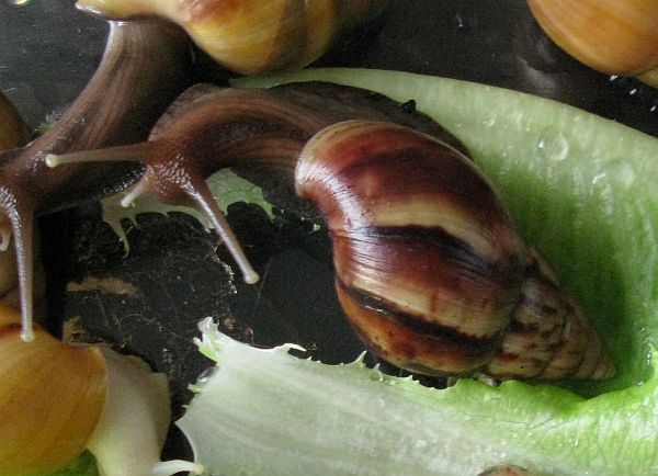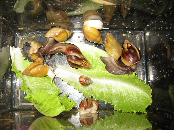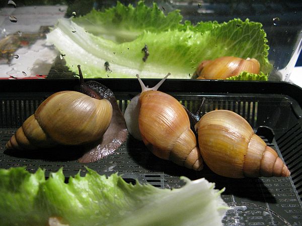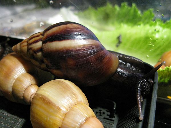 Der Weißschleier auf den Fotos kommt daher, dass durch die Scheiben fotografiert wurde. Aquarienschnecken sind irgendwie einfacher zu fotografieren als Terrarienschnecken