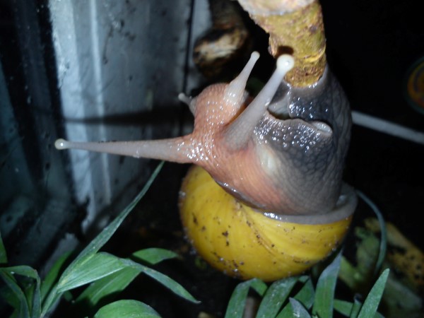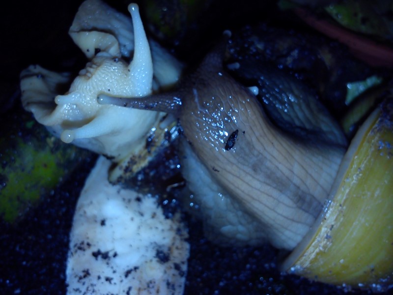 im Mai kamen die Beiden mit ca 1cm zu mir.., die Zwei sind so toll. futtern.. wachsen..schnecken ..und haben eine schöne dunkle Körperfarbe. Pietje Bell ist wirklich fast schwarz/ mit rotbraunen Streifen zum Köpfchen.., Karlsson ist etwas heller, aber auch bei ihm schimmert das Köpfchen rotbraun.., jetzt sind sie ca 12 bis 13 cm groß.