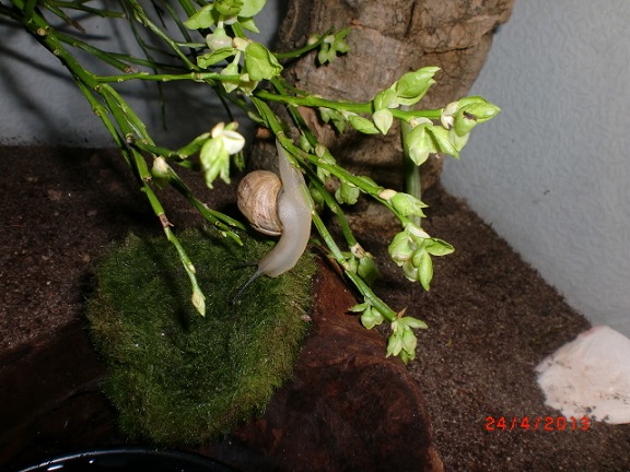 Du hast gut aufgepasst, da liegt im Terra ein Weinbergschneckenhäuschen (leer). Hatte mein Sohn vor zwei Jahren im Schulbiologiezentrum gefunden.