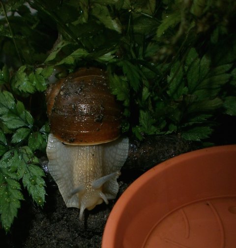 Es kommt mir allerdings bald zu klein vor, obwohl Snail Calculator meint, daß ma da drinnen bis zu 8 Weinbergschnecken halten könne. Nun ja...