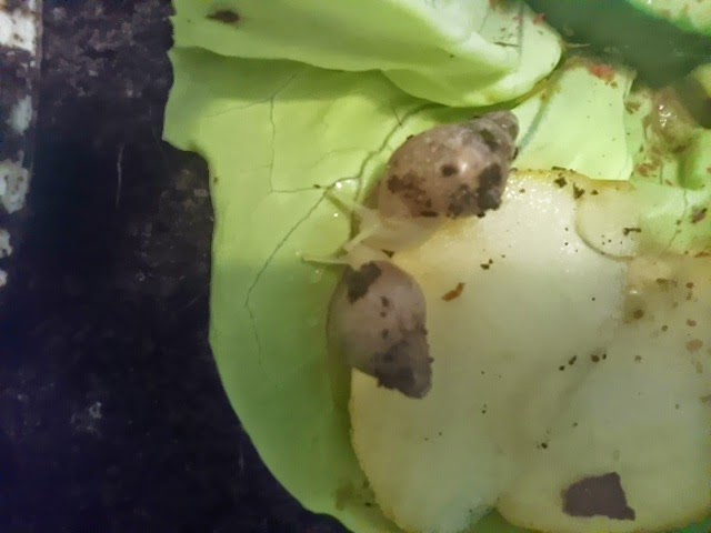 Sie machen mir viel Freude und ich liebe sie und auch meine ganz kleinen Schneckenbabies fressen und wachsen nun und ich freu mich immer , wenn ich sie mal erwische oder Grosse Frassspuren sehe , dann weis ich , das alles okay ist . Heute hab ich sie mal kurz raus und genau angeschaut , aber tatsächlich alles gut und so niedlich .