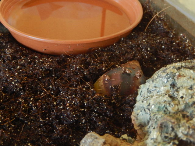 in der Mitte ist eine grosse Golliwoog Pflanze, in das Eck links vorne kommt noch jede Menge Moos, das ist im Moment noch in der Fauna-Box mit der ich sie abholen werde.