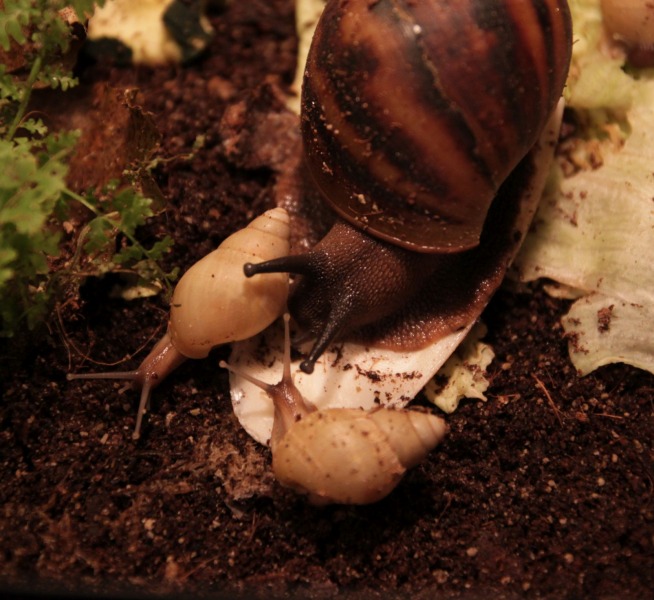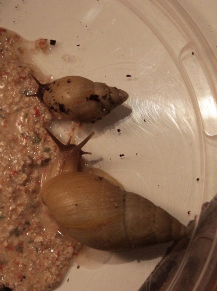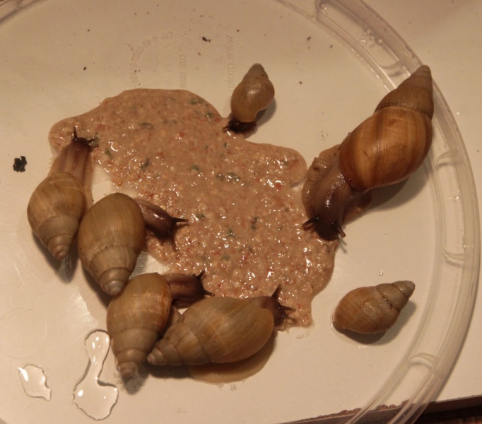 fressen schön, wachsen schön, wobei ein paar von den Kleinen angefangen haben etwas komisch anzubauen, also so als ob eine Drüse ausgefallen ist, aber dann geht's wieder normal weiter. Da Goldie solche Phasen in ihrem Häuschen auch hat, gehe ich davon aus, dass es Vererbungsbedingt sein könnte. Hab ihnen aber trotzdem mal Getreidebrei gegeben. Es sind auch nur schlecht sichtbare, ganz feine Streifen.Auch Groß-Goldie ist wieder unterwegs seit 2 Wochen und hat schon wieder ein Häufchen Babys hinterlassen. ^^ scheint noch Reserven zu haben...