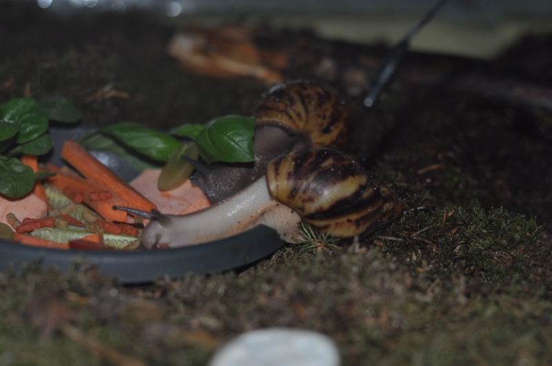 Aber auch das wird nicht reichen um die Tagestemperatur zu bekommen. Somit wird so eine Abdeckung von Exo Terra mit 4 Birnen angeschafft. Wird wohl Mitte kommender Woche auf dem Terra stehen. Im Moment regel ich die Temperatur ganz banal über die Heizung (Raumtemperatur). Für uns Menschen ist das aber einfach deeeutlich zu warm. Ich bin also froh, wenn die Abdeckung und die Heizmatte da sind. Das mit der Orangen Beleuchtung ist nur so ein Gedanke, ich weiß nicht wie ich rausfinde, ob die Schnecken sich dran stören. Etwas mehr Licht wäre aber für Fotos toll. Ein kleines Hilfslicht hat die Kamera zwar, aber das ist so kurz da und zum Fokussieren halt manchmal schwierig.