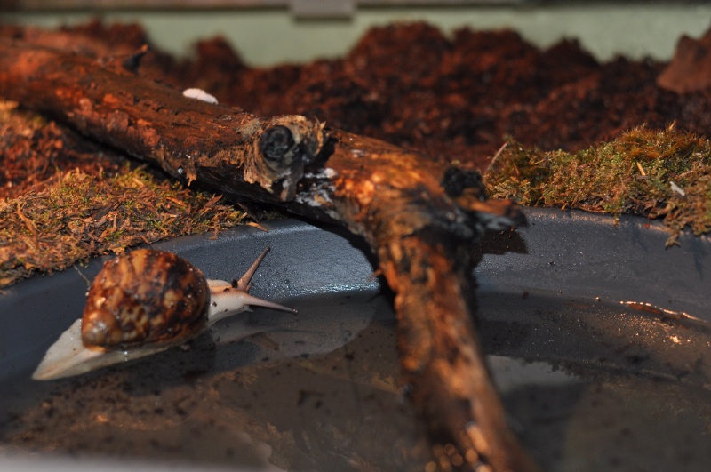 Ich hab mich vorhin total gefreut, als ich eine kleine weiße Schnute sah. Galadriel hat ihren Kopf in die kleine Wasserschale (mit Heilerde) reingetunkt. Leider weiß ich nicht, ob es normal ist, dass sich die Heilerde einfach auf den Boden liegt. Schneck schien es nicht zu stören.