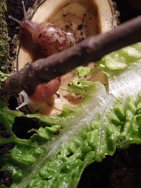 Heute sind noch 4 kleine Lissachatina Fulica bei mir eingezogen. 2x Wildtyp, 2x White Jade.