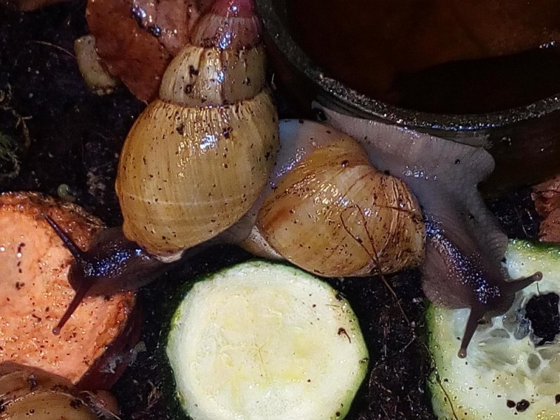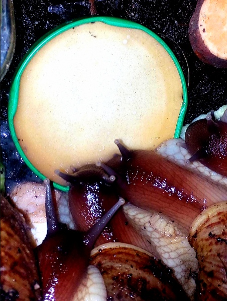 Wo ist das Badewasser geblieben? Der Obelixefekt. Das ist übrigens die einzige Schnecke die bei mir einen Namen, sie heißt Delli, da sie die Angewohnheit hat sich im Schlaf fallen zu lassen. Beim ersten mal einen Schreck bekommen, alles Harte entfernt und gegen Weichplastik ausgetauscht, trotzdem hat sie das noch einmal geschafft, ob sie auf eine andere geknallt ist? Hatte das noch nie erlebt und auch die anderen machen das nicht. Ist soweit gut verheilt ihr Aua, aber man sieht es noch. Seit sie am Boden schlafen bin ich mit derTraumsuse beruhigter.