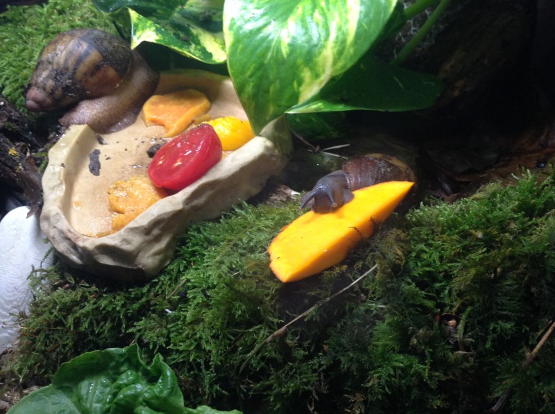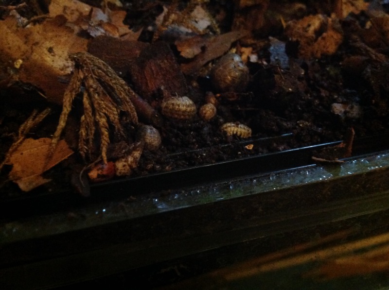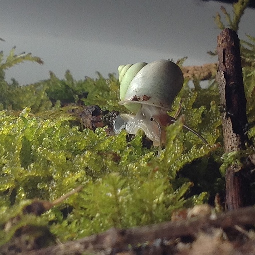 Als ich aufgrund des einsetzenden Schimmels an den schönen Moos- und Flechtenästen, diese aus dem Terra herausnehmen musste, habe ich 3 Schnecken gefunden. Gestern sah ich ein viel kleineres Craveni-Kind. Somit sind also mindestens 4 am Leben. Aber warum "streunern" sie nicht alle zugleich auf Futtersuche durchs Terra?