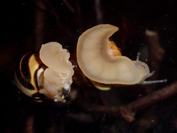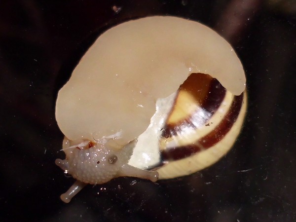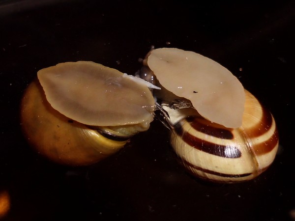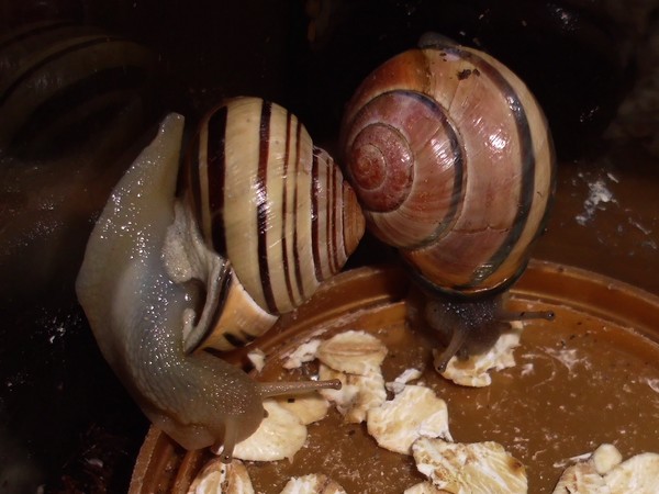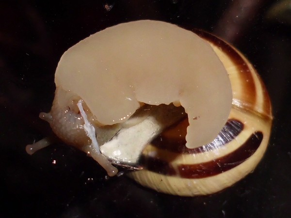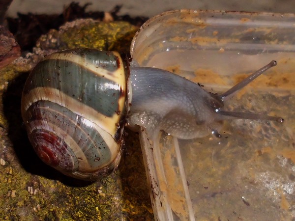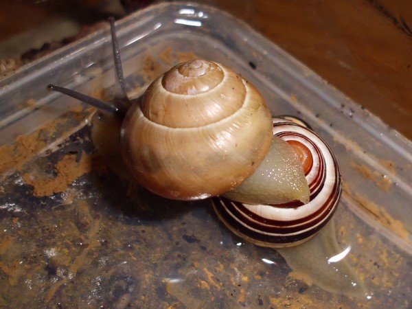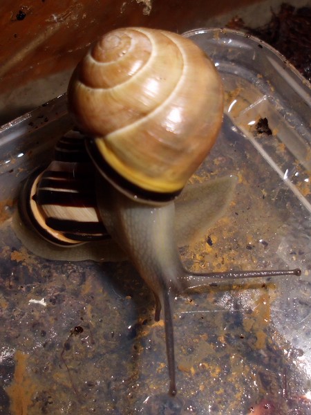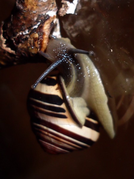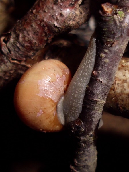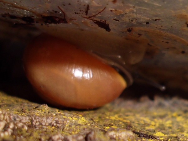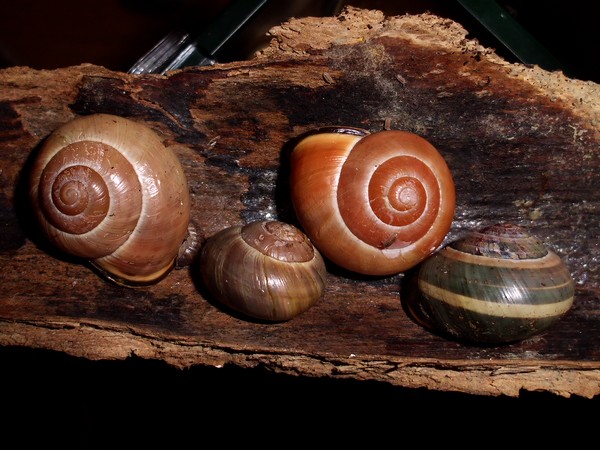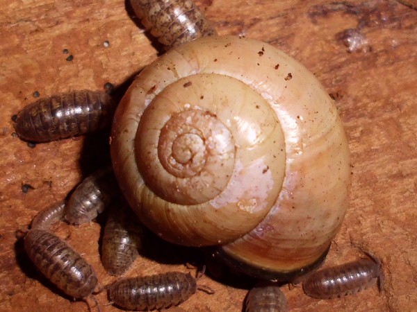 Im Laub war natürlich auch eine Schnecke, und dann unter einer Borke, die auch noch etwas erhöht liegt, da träumte die kleine rote und ganz viele Asseln; die niedrigere Lage sorgt wohl für bessere Feuchte an der Unterseite.
