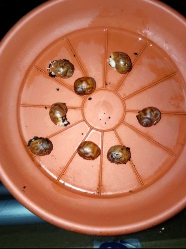 Kürbiskerne sind bei mir auch schon gekeimt und wurden von den meisten gefressen. Die Kresse von den Archachatina nicht, die Lissas haben den Rasen gemäht