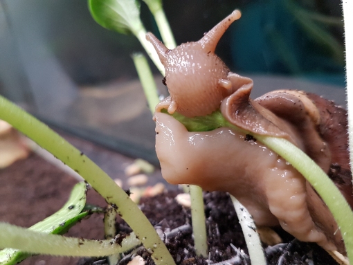 "Kürbiskeimling! Lecker! Aber müssen die immer so lang sein?! Ich komm so schlecht ran. Kannst du da nicht mal was machen?"