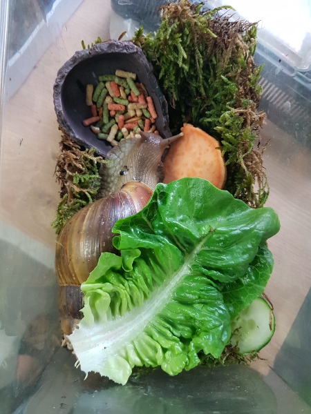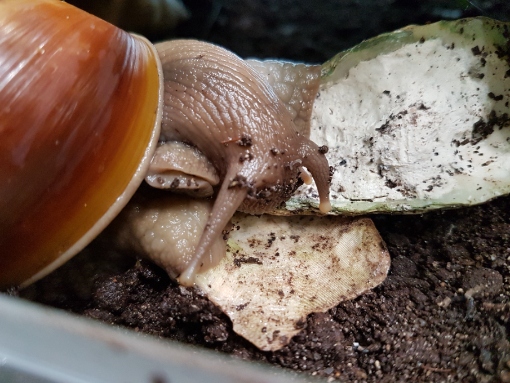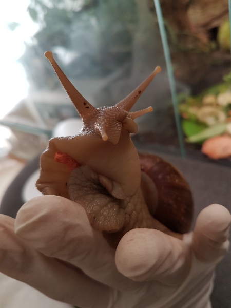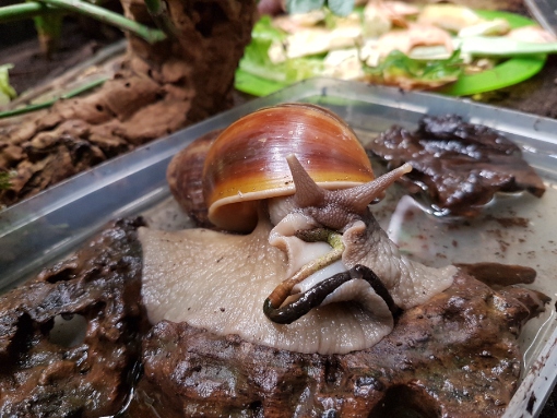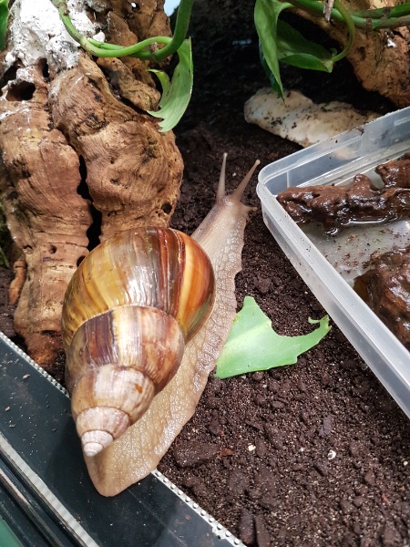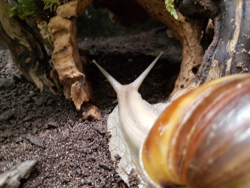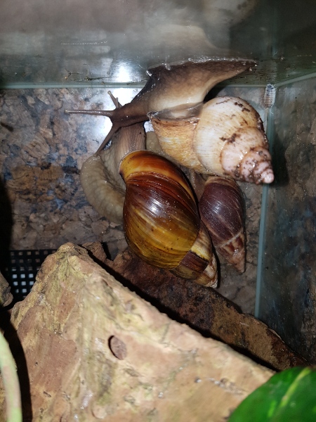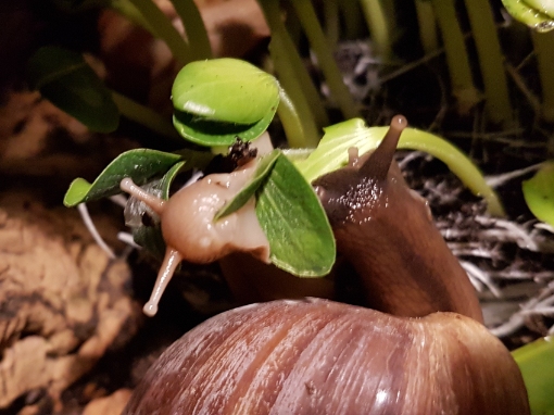 Ja, ihr denkt jetzt bestimmt, "Na und!" Aber, was soll ich sagen, durch Zufall habe ich in dem "relativ" neu gebauten Tropenhaus eine tolle Entdeckung gemacht. Lissachatina fulica!! Ich konnte meinen Augen kaum trauen. Aber da waren sie