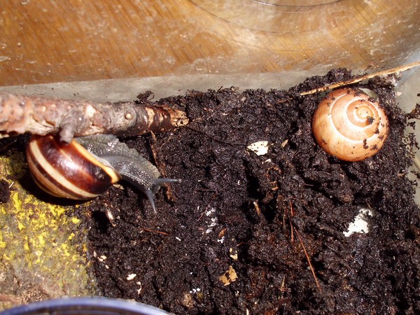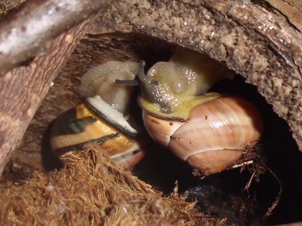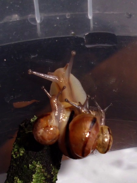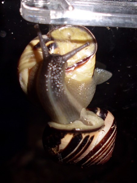 Heute musste ich am Morgen noch schnell eingreifen: ein Schneck versuchte mal wieder, einen anderen zum Absturz zu bringen.