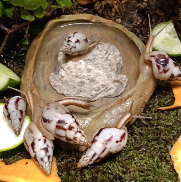 Es sind alles F1-Schnecken und die meisten sind schon ordentlich gewachsen. Anfangs hatte ich auch einige Wildfänge, aber die sind leider alle innerhalb weniger Tage gestorben...