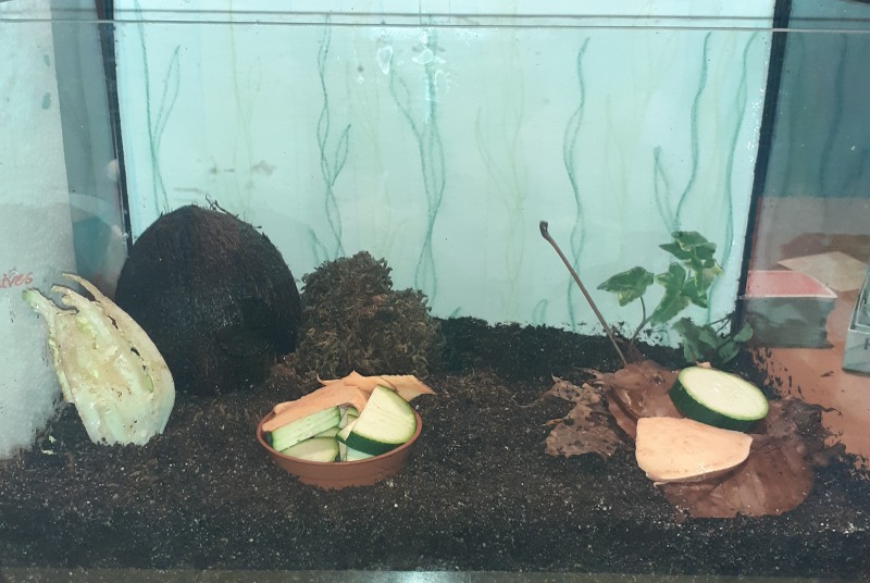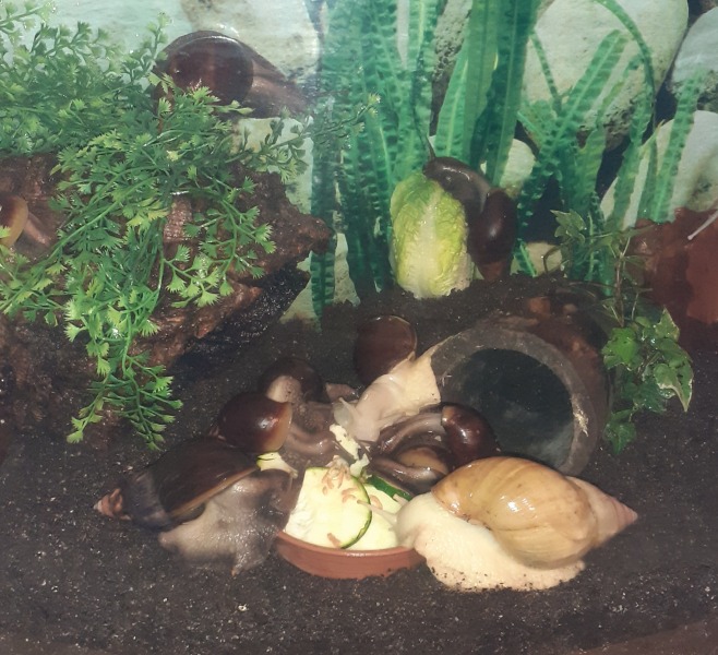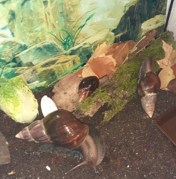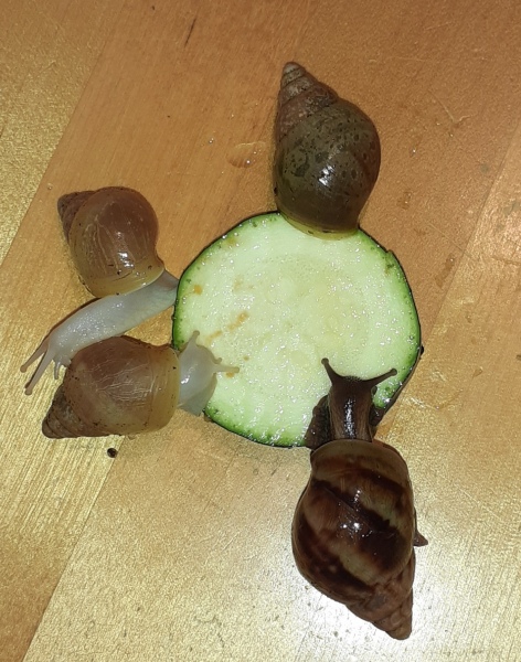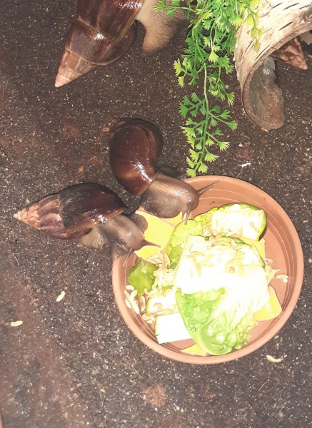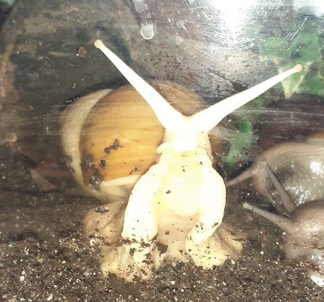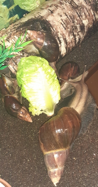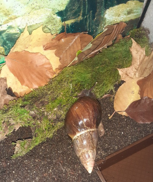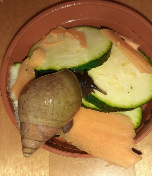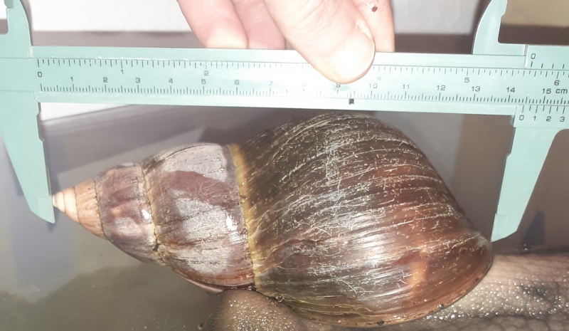 Arnold dürfte jetzt so ca 4Jahre sein, genau weiss ich es nicht, hab ihn mit 3 anderen Schnecken übernommen, da hieß es sie wären so ein Jahr alt . Arnold sah damals nicht schön aus, man sieht es ihm auch leider noch an. Als sie bei mir waren ist 1 Schnecke bald gestorben, die anderen fingen plötzlich an zu wachsen. Jetzt sind sie meine 3 größten, vor allem eben Arnold.