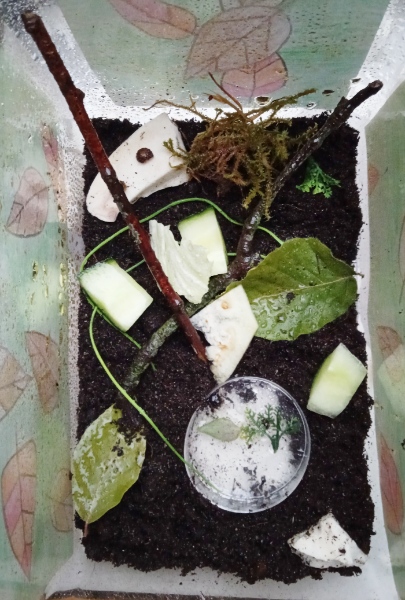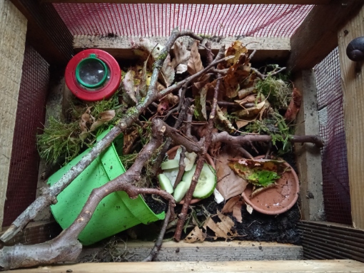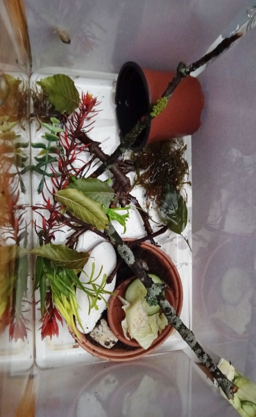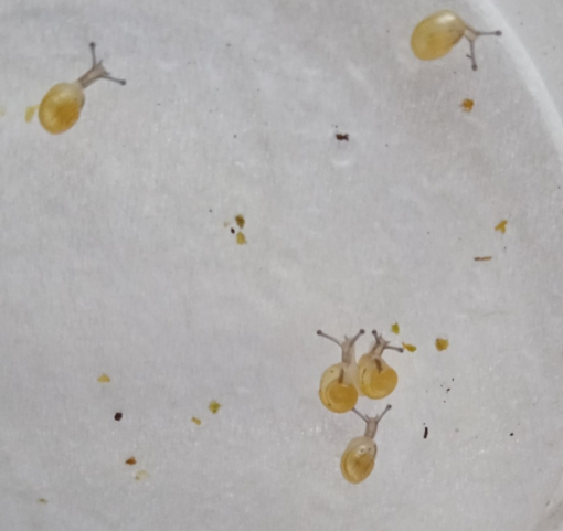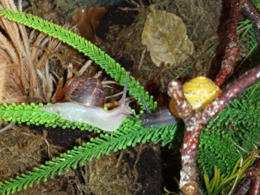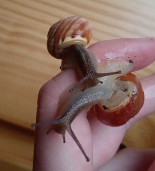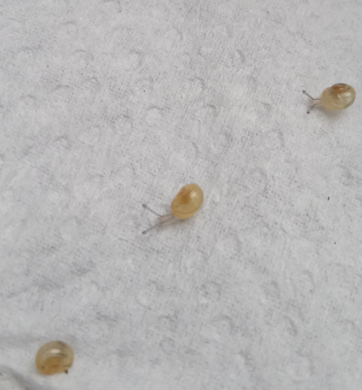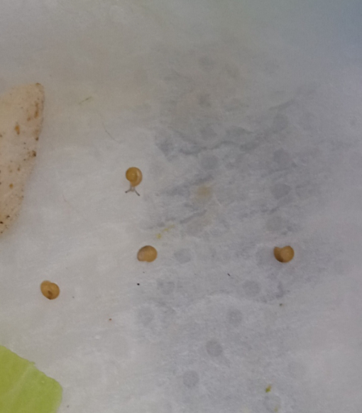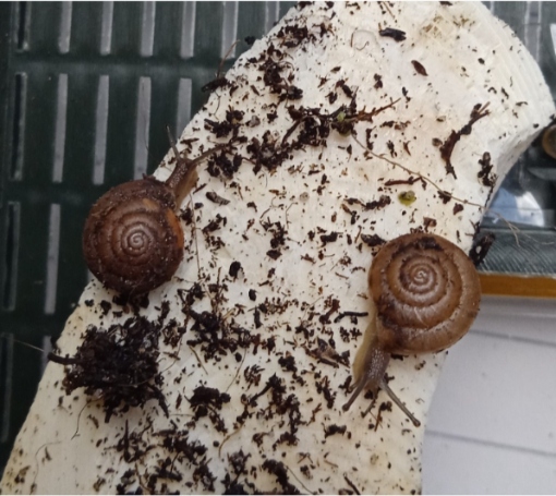 Den fünf Haarschnecken geht es super, sie fressen jedenfalls und sind aktiv von wachsen kann man zwar nich nicht sprechen aber das wird ja noch kommen ebenso wie bei den kleinen Garten-Bänderschnecken