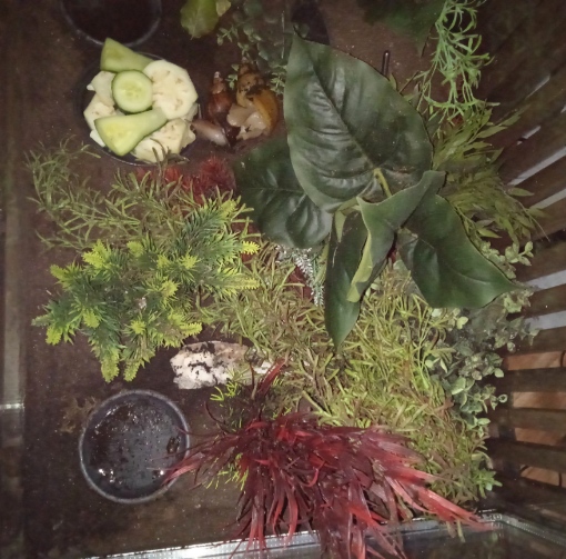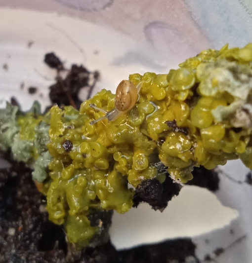 . Der verbliebene ist sehr aktiv und geht auch an 'normales' Schneckenfutter nicht nur an Flechten.