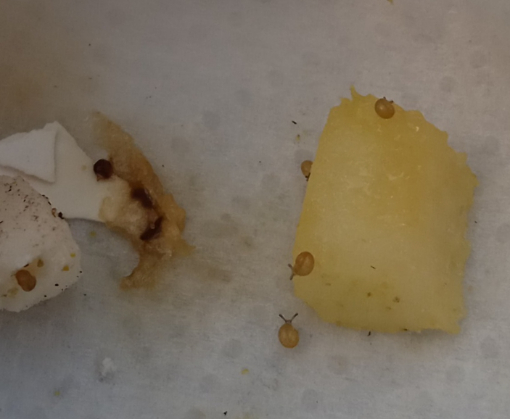 Bei den Steinpickern sieht es leider nicht so gut aus. Von den fünf Eiern sind ja nur 3 geschlüpft, von denen ist nur noch ein kleiner übrig, der Rest lag gestern morgen tot in der Box