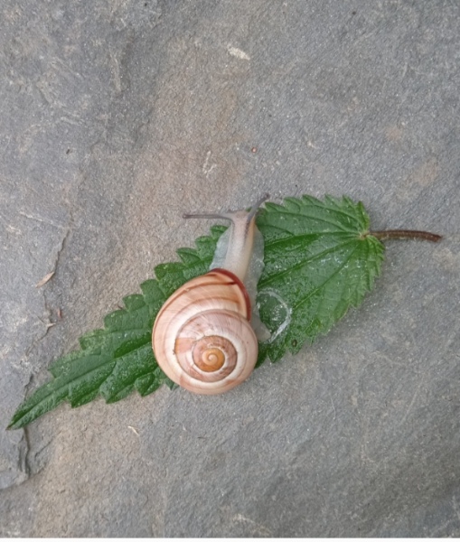 Die kleinen Hain-Bänderschnecken wachsen schon und ich meine bei allen einen kleinen leichten Streifen zu sehen.