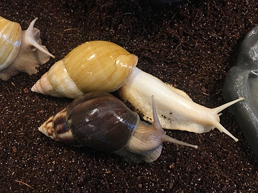 Nun ist es ja doch schon eine Weile her, dass ich hier zuletzt gepostet habe. Leider habe ich nicht nur gute Nachrichten zu berichten, denn inzwischen besteht mein Bestand nur noch aus Miss Lola, Yang, Neggie, Nemo, McNugget, Domino und zwei Kleinwüchsigen Rodatzi, die ursprünglich zu den Abgabeschnecken gehörten. Ihre Namen sin Bertie und Hugo. Slimy und Sneakers habe ich jedoch im Juli und Oktober tot im Terrarium aufgefunden. Sie waren davor schon immer dünner und schwächer geworden, doch leider habe ich keine Ahnung, was der Grund dafür war…