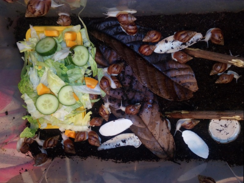 Bei Archachatina muss ich auch erst mal die Ausfallquote kennen lernen. Da bei ihnen ja nur kleine Stückzahlen vorhanden sind, sehe ich das Problem eher langfristig, da es mehrere Gelege braucht um große Stückzahlen zu erreichen, was auch dann wieder an den oben genannten Parametern stößt und sich dann durch frosten eventuell regelt. Aber da sehe ich kein so großes Problem, da die ja auch mehr gefragt sind.