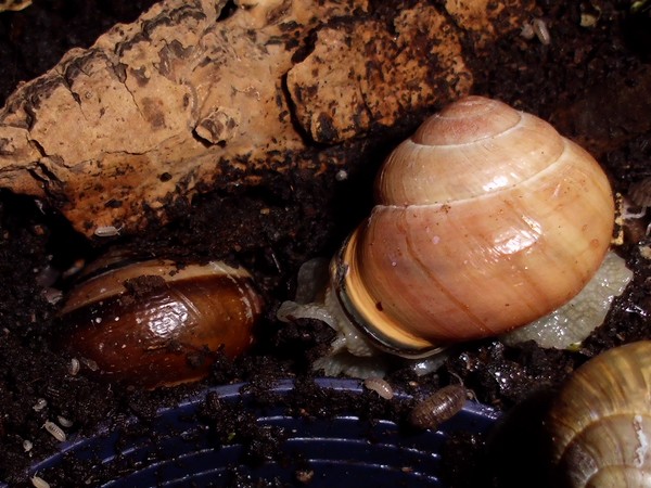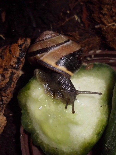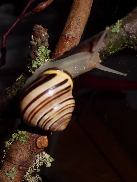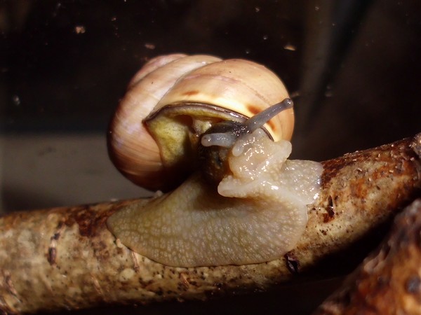 So, hier sind noch einige Fotos von Anfang August. Es gab endlich mal wieder einen Zweig mit Flechten, und recht schnell meldeten sich ein Paar Schnecks freiwillig zum Putzdienst.
