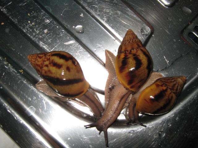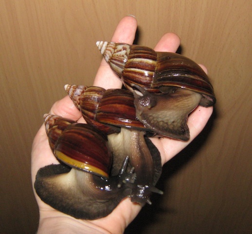 Bei dem Foto wo du die Puylaerti auf deiner Hand hast, sind da im Hintergrund in der Schüssel mit Wasser auch Schnecken drin? Was sind das für Schnecken?