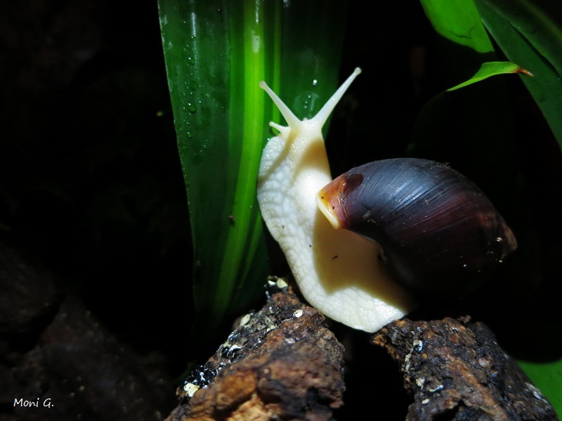 Die Terrariumgröße ist momentan für die Drei noch in Ordnung, aber ich möchte mir ein wesentlich größeres zulegen. Ich sehe schon, auf Dauer wird es für diese aktiven Schnecken viel zu klein sein. Ins Auge gefasst habe ich mindestens 1 m lang. Aber bis dahin muss ich mir noch einiges anlesen (empfehlenswerte Heizmatten, Befeuchter etc.).