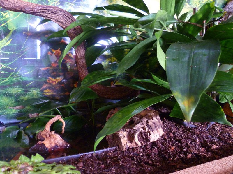 Riccia fluitans. Da werden sich aber bestimmt immer mal wieder Änderungen ergeben, da ich nicht davon ausgehe, dass alle Pflanzen auf Dauer im Terrarium gedeihen und von den Schnecken verschont werden. Mit der Entscheidung, eine