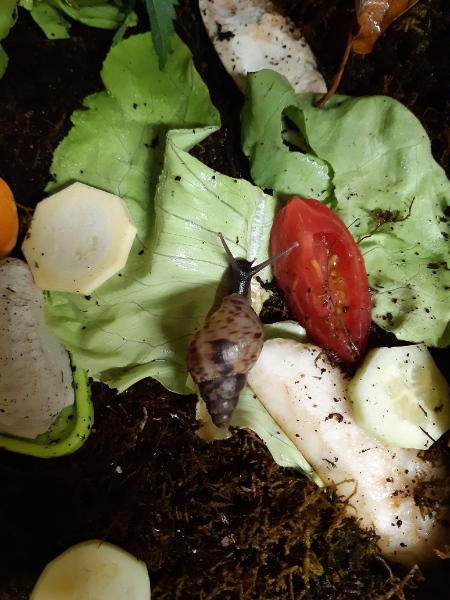 Gestern Abend fand ich im Terra 2 größere Schnecken und ich sagte zu meinem Jung: Such mal Schnecki. Der guckt mich mit fünf Fragezeichen an und nimmt die kleine Box und sagt: "gefunden ". "Nee, Schildi ist doch bei dir.", Da guckt er in sein Terra, guckt mich an und sagt wieder:"gefunden ". Ich wollte es nich glauben, aber die andere Große war Schildi...