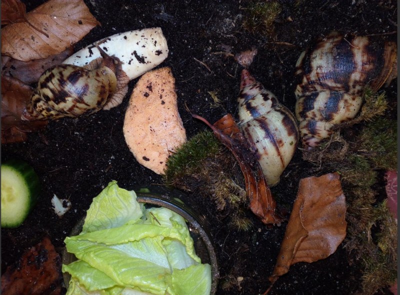 Ja, die reticulata Wildfarben, waren meine zweite Art, und habe jetzt schon eine NZ Generation aufgezogen. Die sind einfach Lieb, habe sie ja schon vorgestellt. Aber die kleineren Archachatina sind auch sehr faszinierend, da habe ich schon einige Arten. Für die braucht man Gedult, sind halt nichts für Interaktionen, wie die fulica oder reticulata. Letztere lassen sich sehr gerne streicheln.