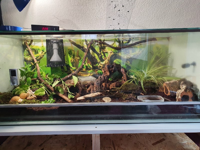 Ich musste wirklich aufpassen, dass ich freundlich bleibe. Aber so kleine Hinweise, dass das Terra für 2 erwachsene Tiere ja eigentlich schon 60cm, besser 80, lang sein sollte und dass meine Schnecks im ungefähr gleichen Alter wesentlich größer sind, konnte ich mir nicht verkneifen. Einfrieren hab ich auch erwähnt. Aber ob sie verstanden hat, worauf ich aus bin, ist fraglich...