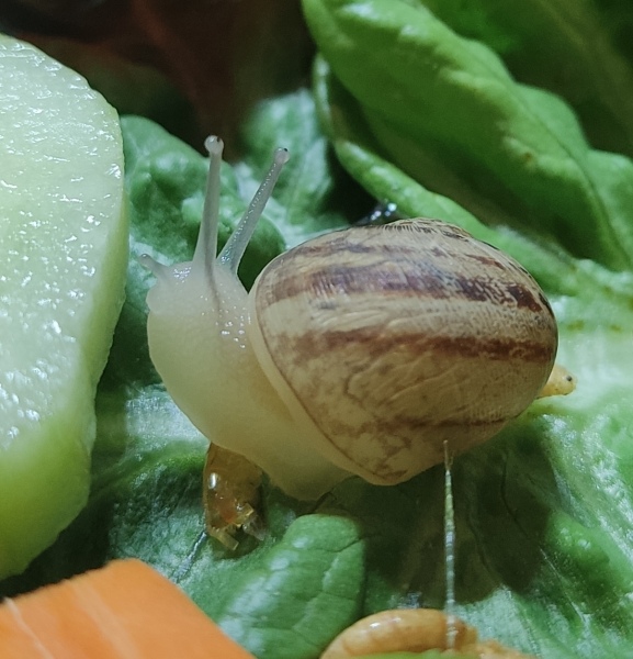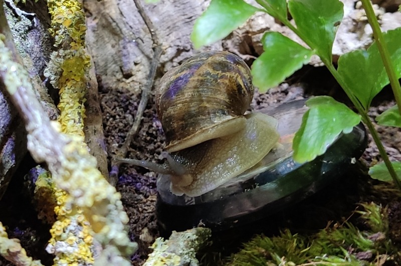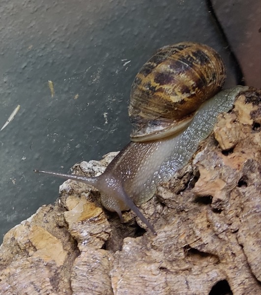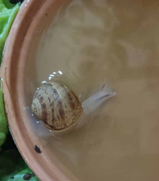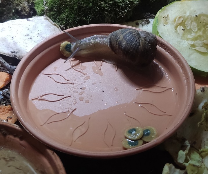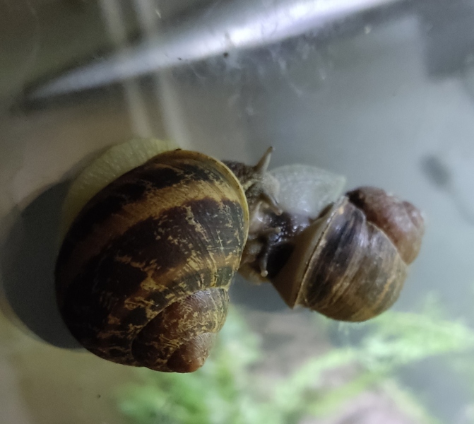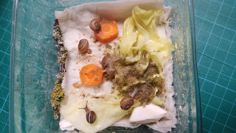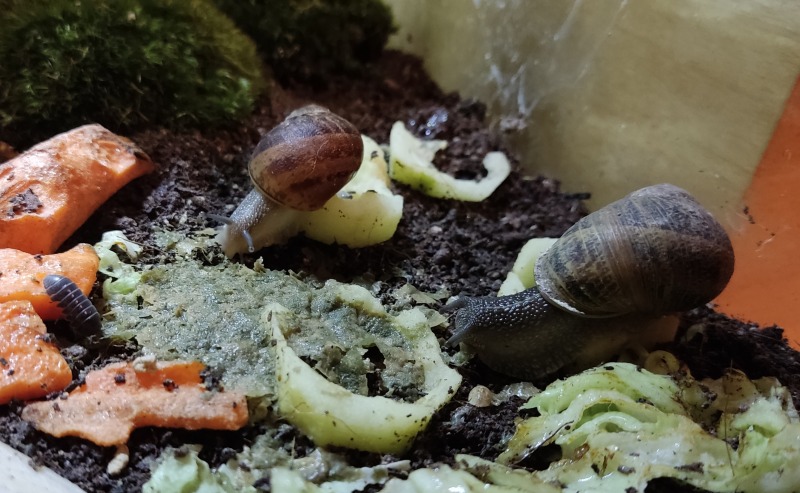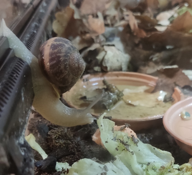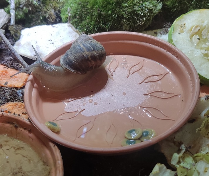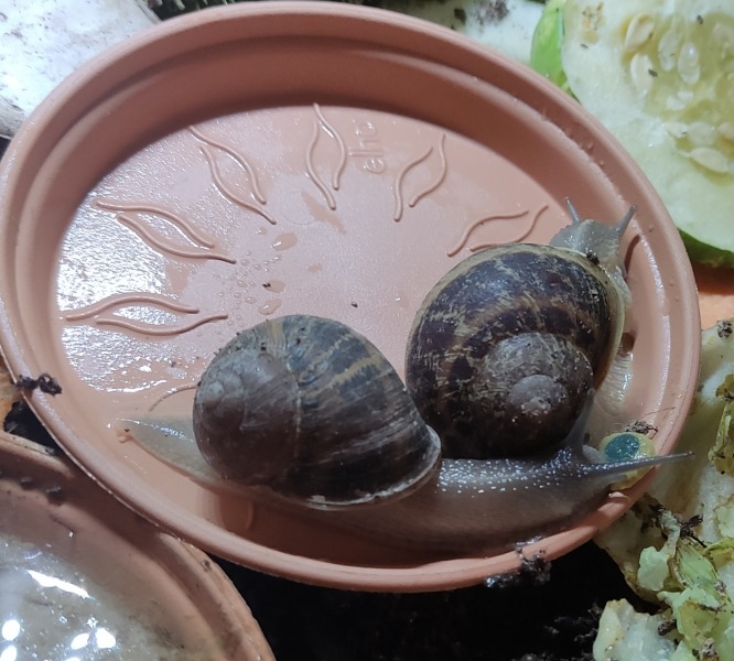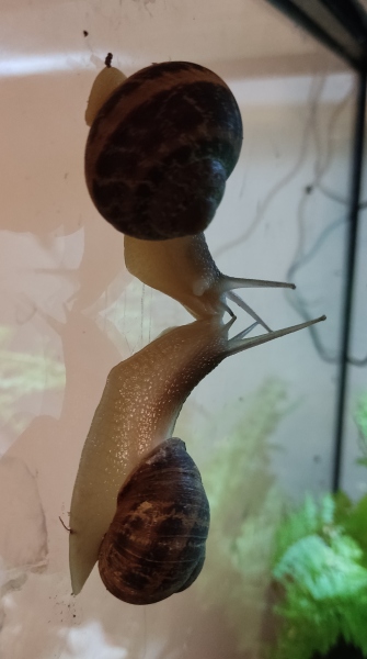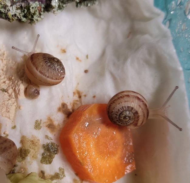 Wir waren zwei Tage außer Haus, die Schnecken hatten also eine Nacht sturmfrei. Wir kamen gestern Nachmittag zurück und ich hatte eigentlich erwartet, dass alle schlafen. Aber nein - Frosti hat eisern das Hygrometer bewacht - die Luftfeuchtigkeit war aber ok!
