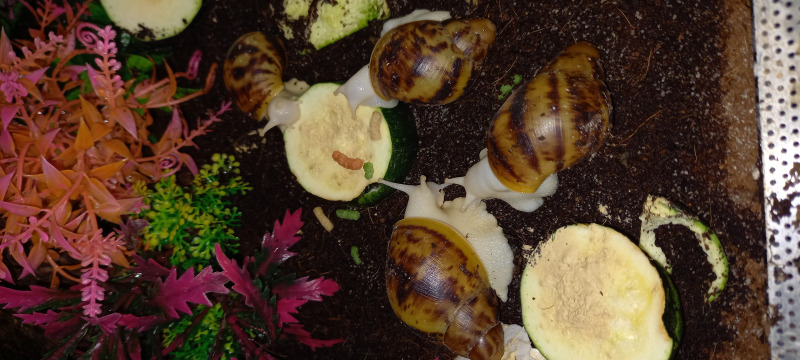 Danke Kaos Mir ist die Haus Ähnlichkeit auch schon aufgefallen,besonders bei 4 von ihnen die schon fast exakt gleich aussehen. Sie Ähneln außerdem immer mehr ihren Elterntieren vom Gehäuse. Ob das in der Genetik liegt weiß ich nicht aber je älter und größer sie werden desto dunkler wird der nächste Hausabschnitt wie bei einem ihrer Elterntiere.