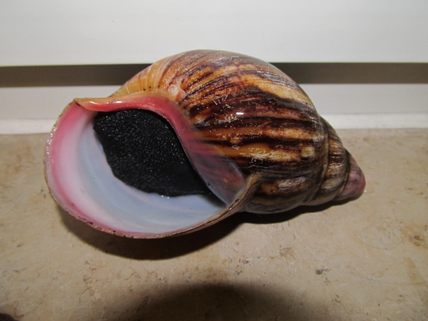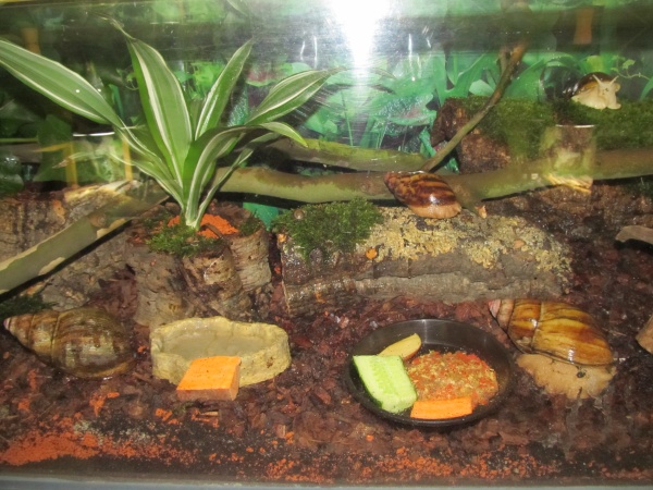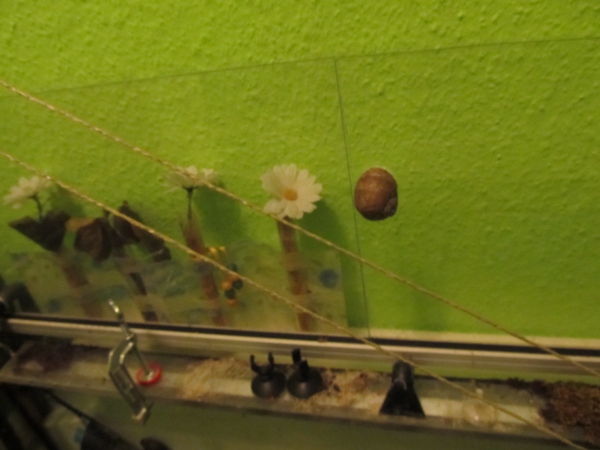 Fürs putzen kamen Nudel-und Weinbergschnecken zusammen in ein Aquarium mit Deckel.