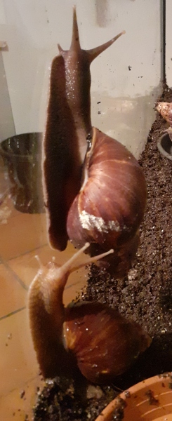 Aria, man kann doch gaaanz deutlich erkennen wie die untere Schnecke das Häuschen der oberen Schnecke heimlich mit Kalk beschmiert hat Aria hat geschrieben:Ja, das ist Kalk. Sie hat sich den Streifen wohl vom Kalkblock abgeschubbert.