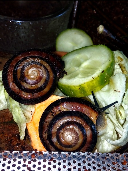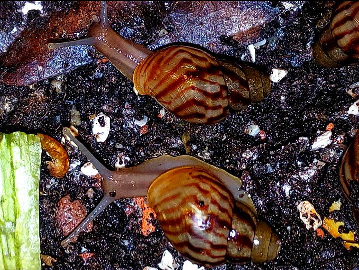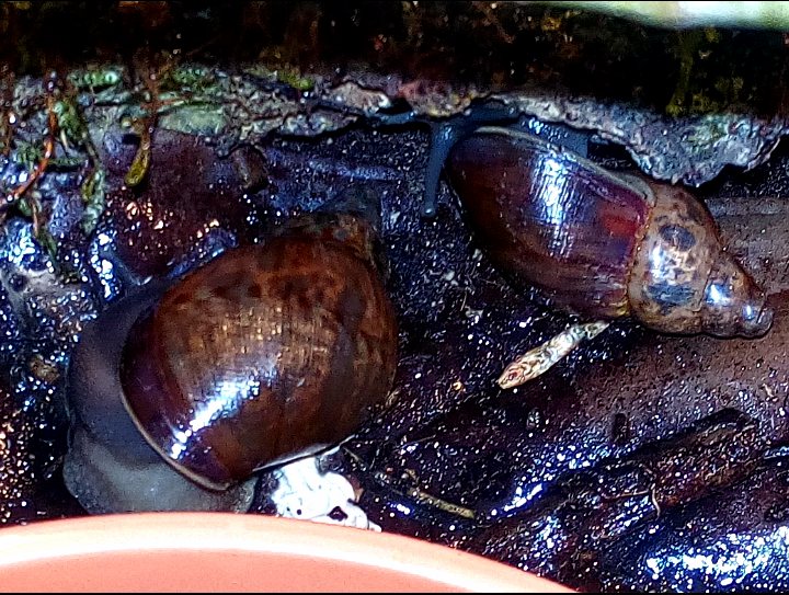 Da es in Kamerun ein Hochlandplateau und verschiedene Gebirgszüge gibt, gibt es dort Gebiete mit deutlich niedrigeren Temperaturen. Unter Bäumen (das Gebiet ist auch mit Primär- und Secundärwäldern bewachsen, wie die Küstentiefebene), aber die Temperaturen können auf 20 - 22 C am Tage liegen, während die Tiefebene bei 26 - 30 C liegt, im Schatten. Regenfälle sind ziemlich identisch von Hochland und Tiefebene, nur weiter in das Inland beginnt das Savannengebiet mit anderer Vegetation und Niederschlägen. Darum währe es eigentlich immer sehr wichtig von woher die Schnecken genau stammen. Susann schreibt ja das ihre egregia echte "real Two tone" sind und diese aus einem kühleren Habitat stammen. Nicht alles was unter egregia geführt wird hat Two tone und es gibt anscheinend eine weitere Population im Hoppy die auch Two tone genannt wird, die es aber wärmer möchte. Die ist aber nicht identisch mit den Arten die ich habe und bis auf meine grevillei habe ich auch keine Two tone. Alle meine Arten aus dem marginata Komplex halte ich von der Temperatur ziemlich gleich, ich war auch überrascht als Susann das geschrieben hat, mir war bis dato nicht bekannt das es ein Vertreter des marginata Komplexes es in das Hochland geschafft hat. Da gibt es anscheinend noch viel zu entdecken.