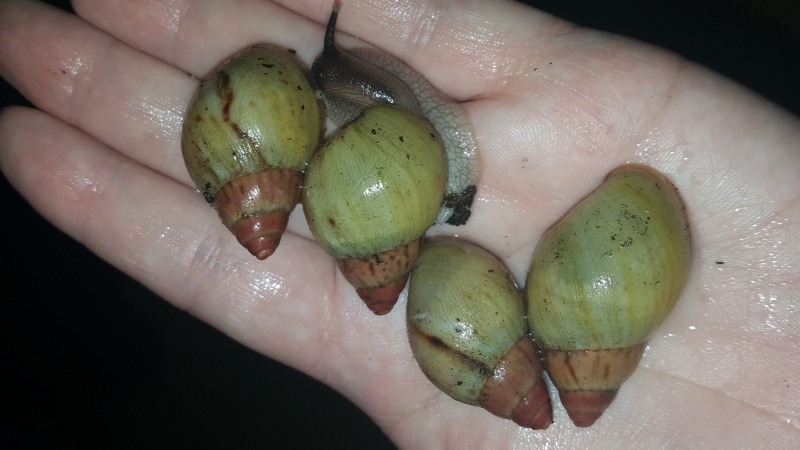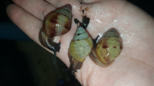 Bei mir gibt es auch etwas Ähnliches: Gehäusealbinos mit vereinzelten dunklen Streifen, die bleiben und vererblich sind. Es sind jedoch wirklich keine Wildfarbenen bzw. White jades.