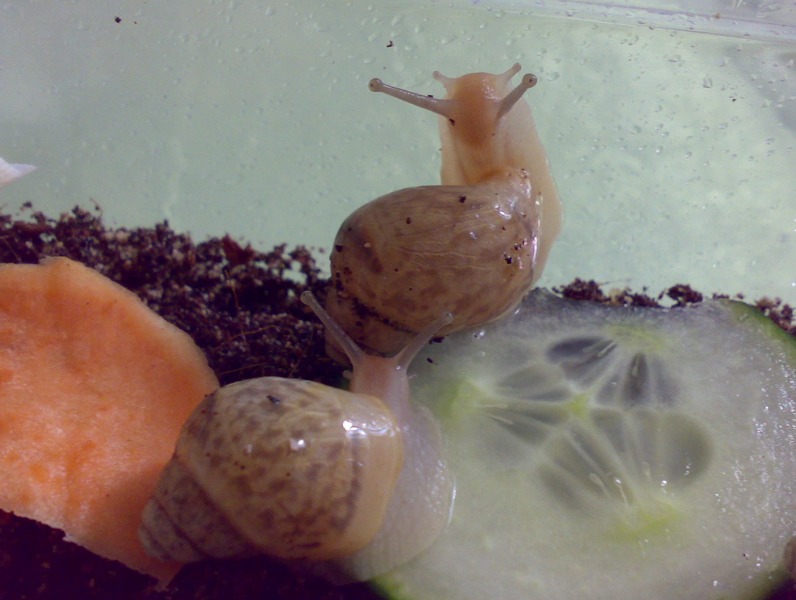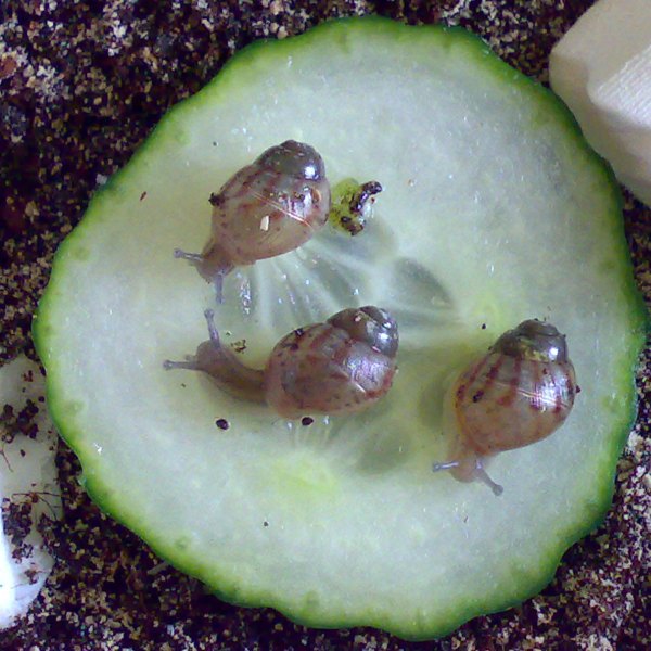 Kurz nach dem Schlupf des ersten Babys habe ich im Substrat Trauermückenlarven entdeckt, ich habe daraufhin die anderen Eier und die drei inzwischen geschlüpften Babys in neues Substrat gelegt.......viele Eier zerbröselten mir schon in den Fingern, darin waren unterentwickelte kleine Schnecken oder nur Glibber.